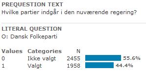 Ligeledes bliver de spurgt om hvilke partier der indgår i den nuværende regering. For 44,4 pct. er ideen om et støtteparti højst sandsynligt ukendt.
