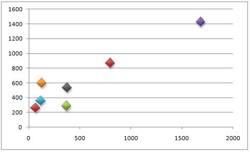 Figur 2: Y-aksen: Antallet af followers. X-aksen: Antallet af tweets