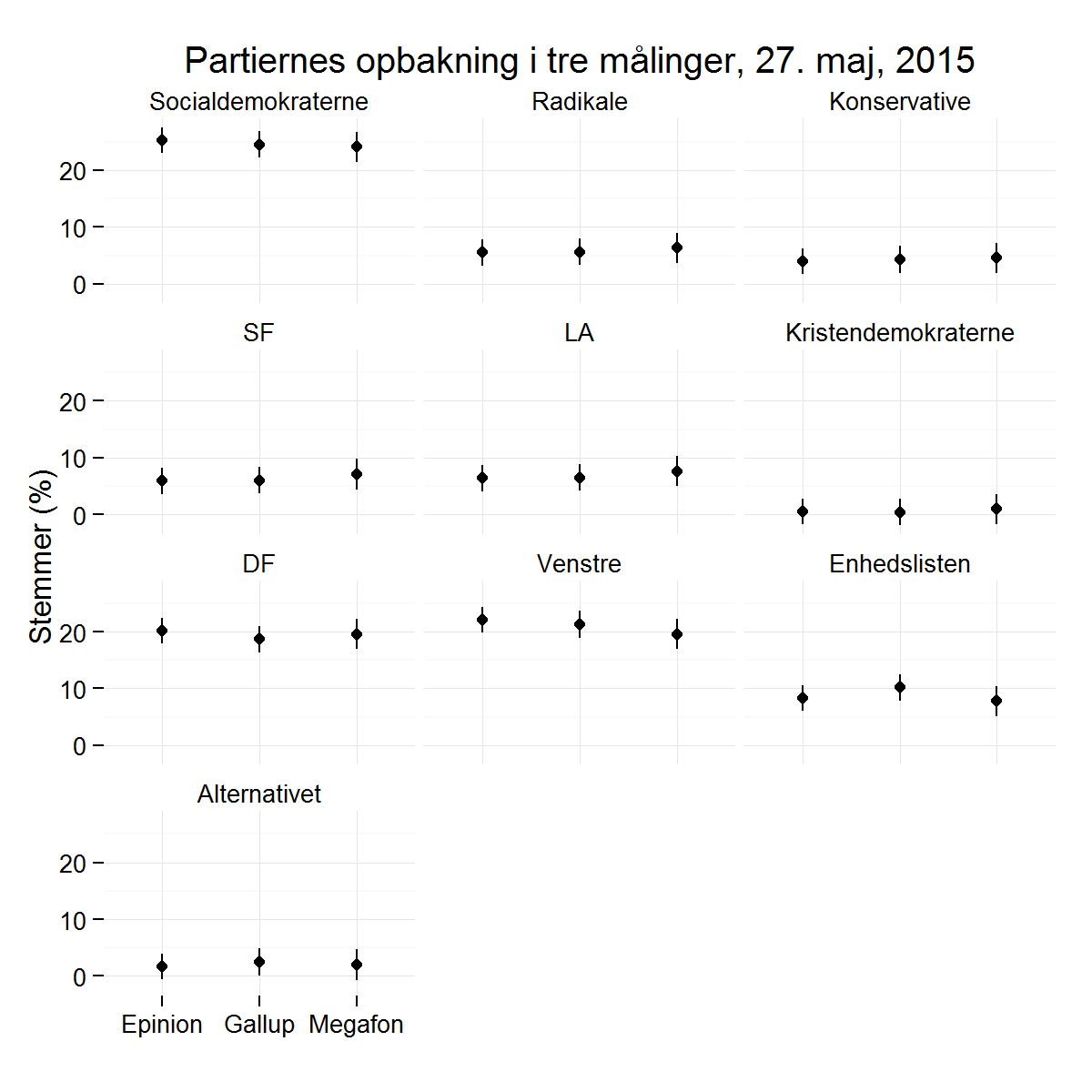 Under folketingsvalgkampen i 2011 skrev jeg, at medierne ikke altid formåede at tage højde for den statistiske usikkerhed i meningsmålingerne. Jeg forventer ikke, at denne valgkamp bliver en af den slags, hvor medierne i alle tilfælde vil tage højde for den statistiske usikkerhed i formidlingen af meningsmålingerne, men jeg har været optimistisk. Det er for det første min opfattelse, at medierne i højere grad er bevidste omkring den statistiske usikkerhed i meningsmålingerne (mere end i 2011 i hvert fald). Det er for det andet også værd at bemærke, at der har været talrige kritiske artikler omkring meningsmålingerne på det seneste, som med al tydelighed viser, at journalisterne er bevidste omkring de åbenlyse faldegruber, når det kommer til formidlingen af meningsmålinger.