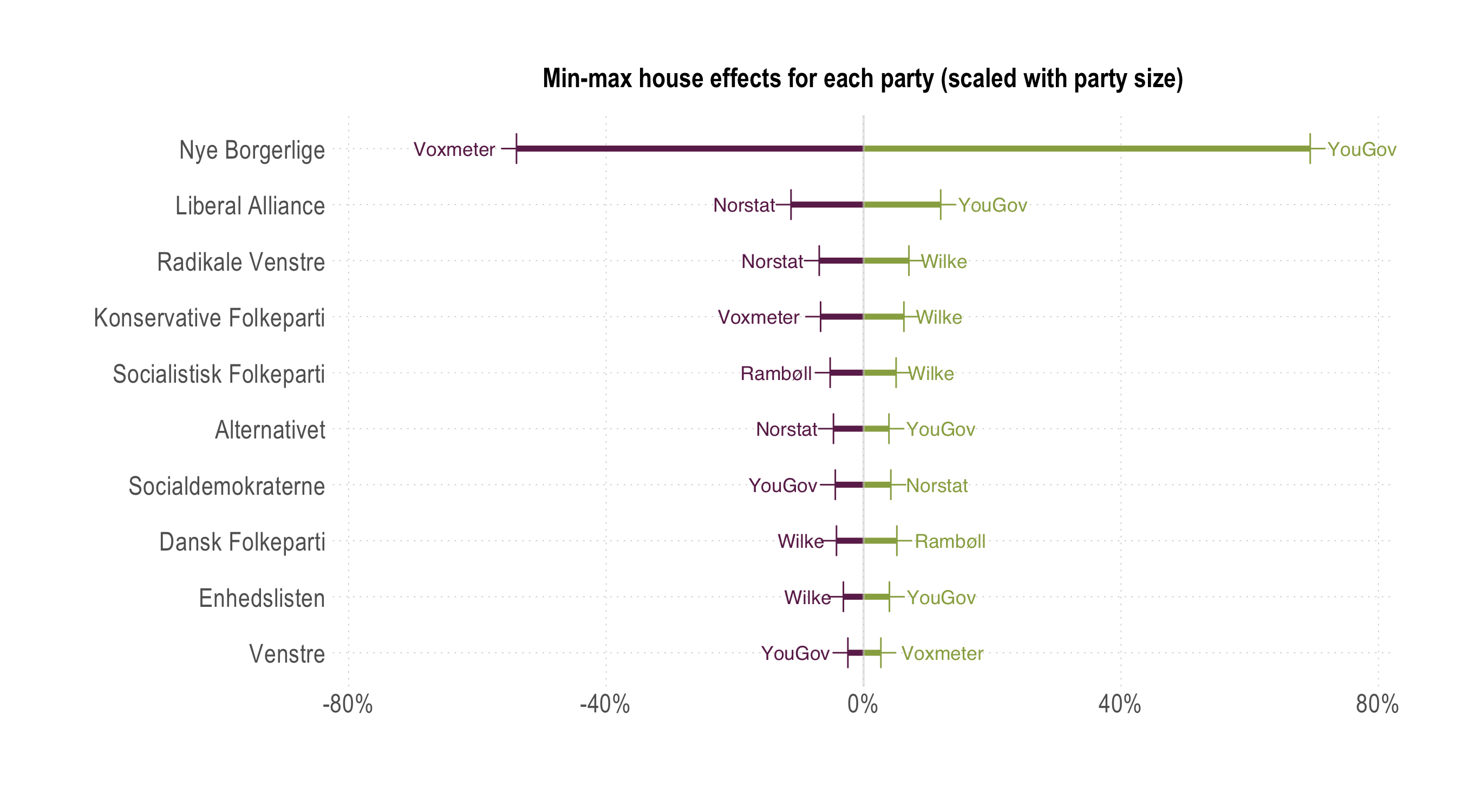 A year ago, Zoltán Fazekas and I looked into house effects in Danish opinion polls on the support for political parties. In brief, we found some interesting differences in the house effects among different polling firms (do read the post from last year if you are unfamiliar with the concept of house effects).