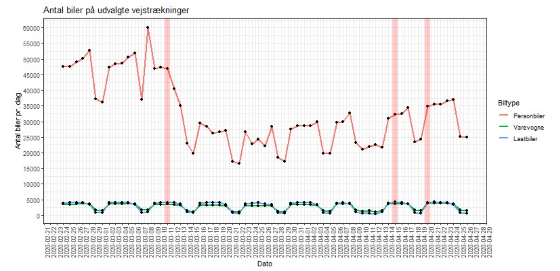 Hvorfor bruge dette tema og ikke noget, der er konsistent med hvad der ellers vises i rapporten? Det skal dog tilføjes, at ovenstående figur har langt større problemer end selve temaet (alene værdierne på x-aksen ødelægger figuren og kunne have være forsimplet drastisk - hvorfor eksempelvis nævne 2020 ved hver enkelt dato?).