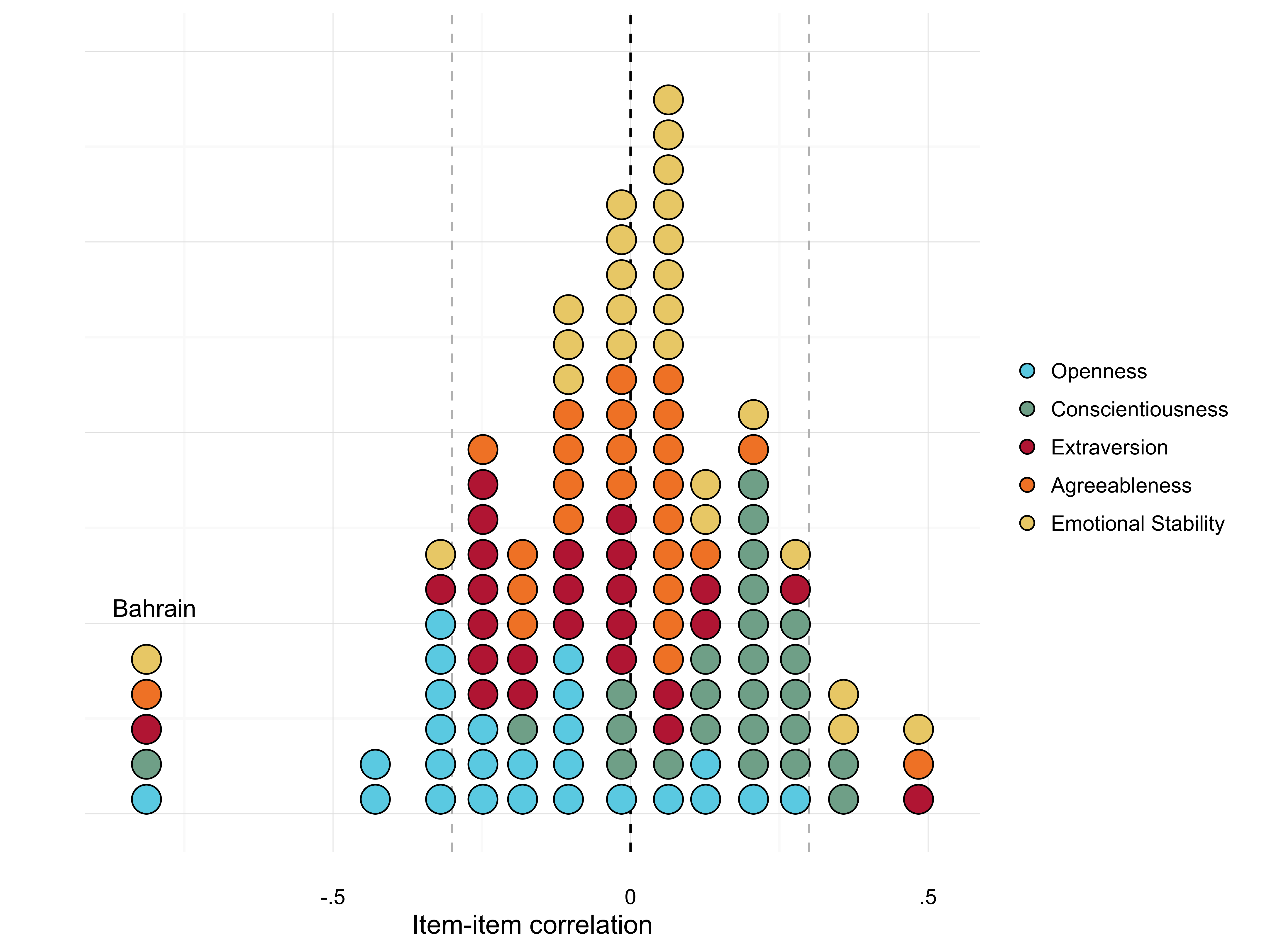 Second, the World Values Survey is not "the only choice to conduct cross-national comparative research on personality." For example, the 2010 wave of the Latin American Public Opinion Project includes data on Big Five traits in a comparative setting (we also use this data in our study in the European Journal of Personality). There are also several studies using Big Five traits in a comparative perspective (e.g. Curtis and Nielsen 2018, Gravelle et al. 2020 and Vecchione et al. 2011). In other words, the World Values Survey is clearly not the "only choice to conduct cross-national comparative research on personality". My recommendation is that if you have no choice but to use the Big Five data in the World Values Survey, limit the data to the Netherlands and Germany (where the reliability measures are satisfactory).