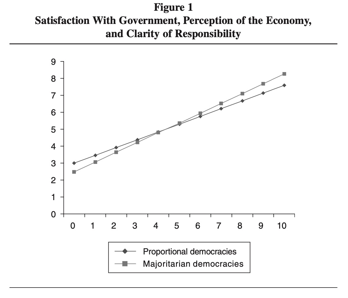 What you see is that there is no information on what is shown on the respective axes. The only thing you have is a series of numbers. "Satisfaction With Government, Perception of the Economy, and Clarity of Responsibility", sure, but what is on the x-axis? What is on the y-axis? Figure 2 in the paper is similar to Figure 1, only with "Trust in Parliament" instead of "Satisfaction With Government".
