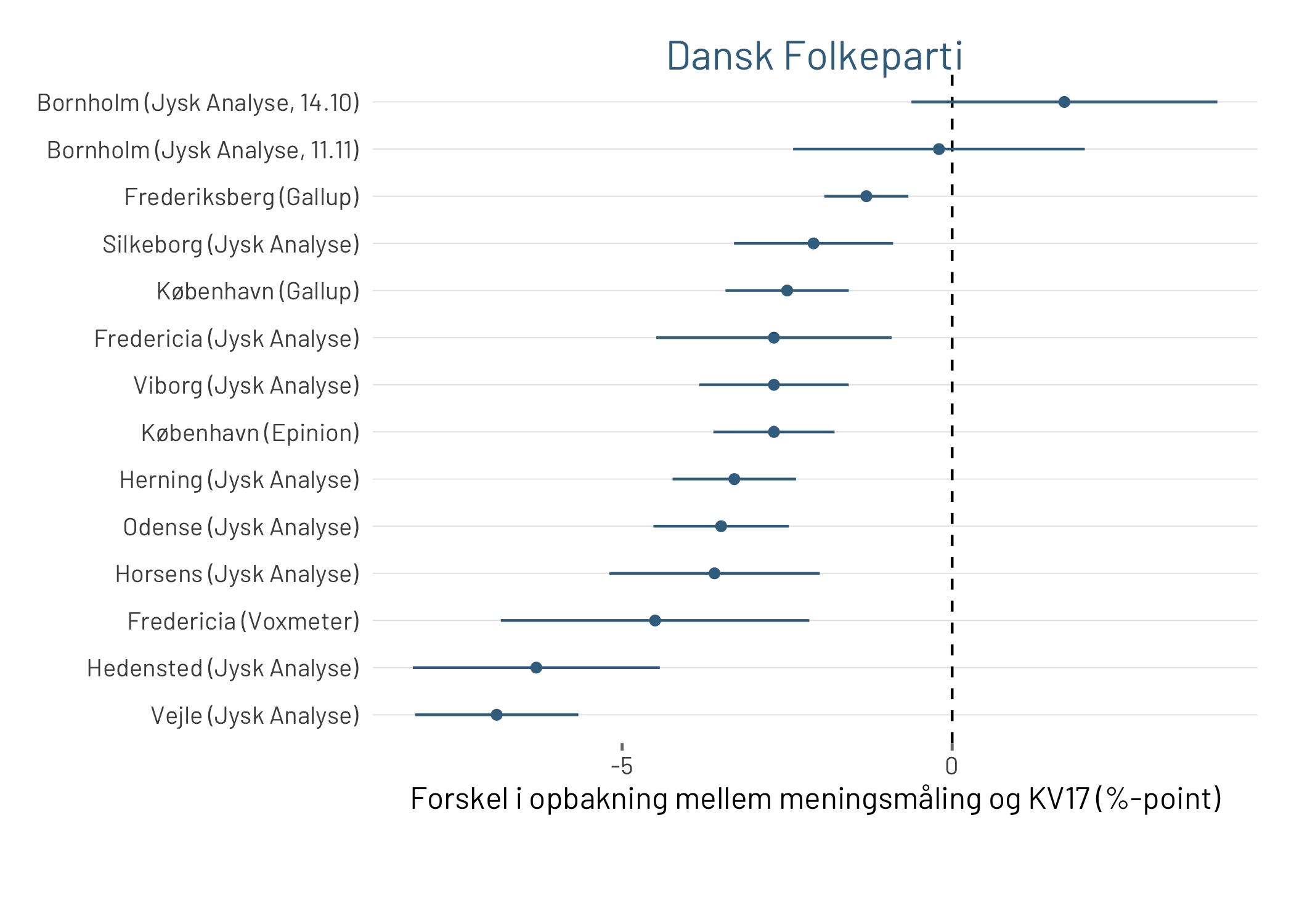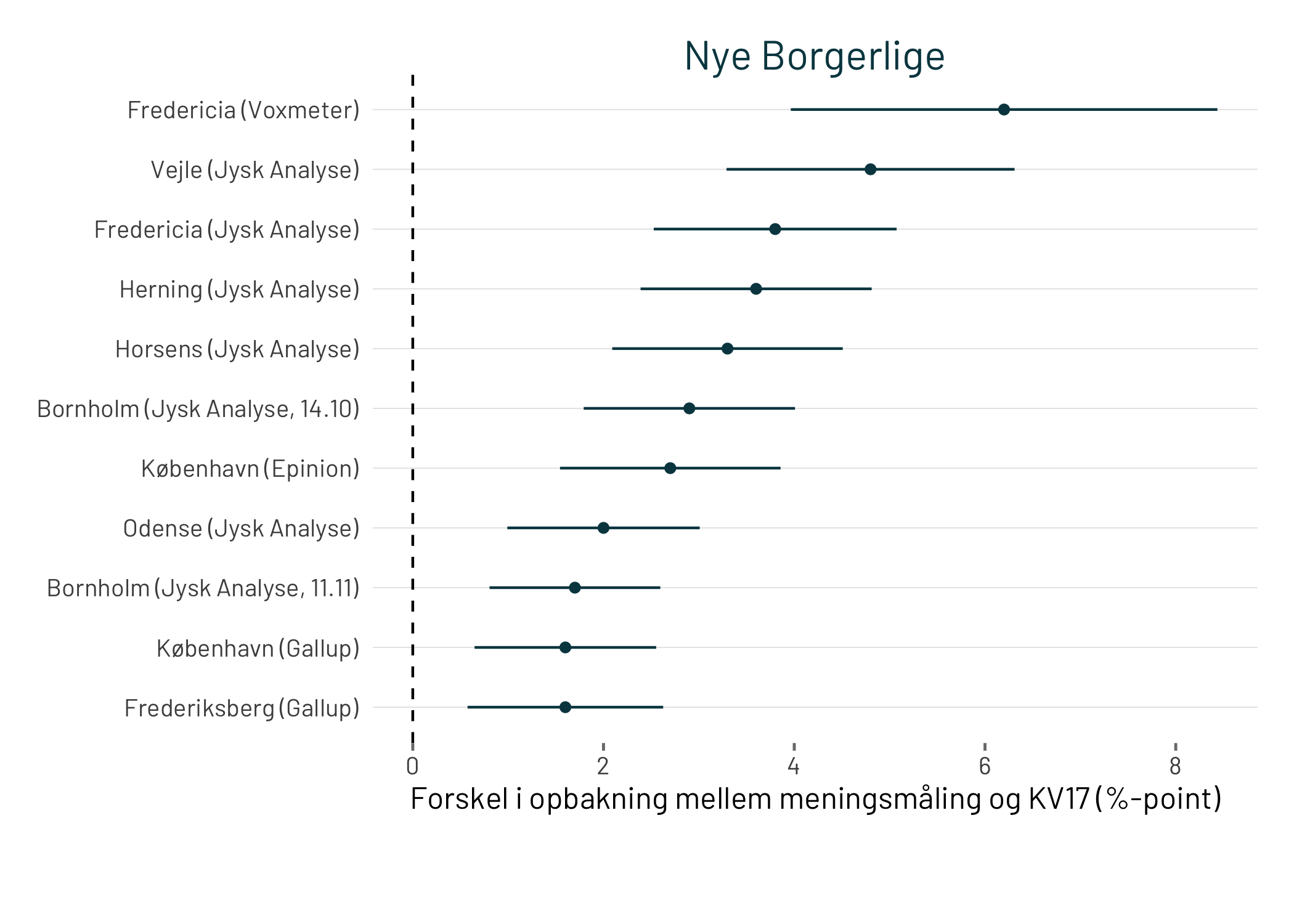 Det skal nævnes, at der er foretaget flere meningsmålinger end dem, der er inkluderet her. For det første kan jeg ikke udelukke, at der er lokaler målinger, der er gået min opmærksomhed forbi (jeg kontaktede Jysk Analyse tidligere på året, men de vendte aldrig tilbage). Det er dog min vurdering, at jeg har været grundig i forhold til at indsamle lokale målinger, hvorfor det forhåbentlig ikke er et stort problem.