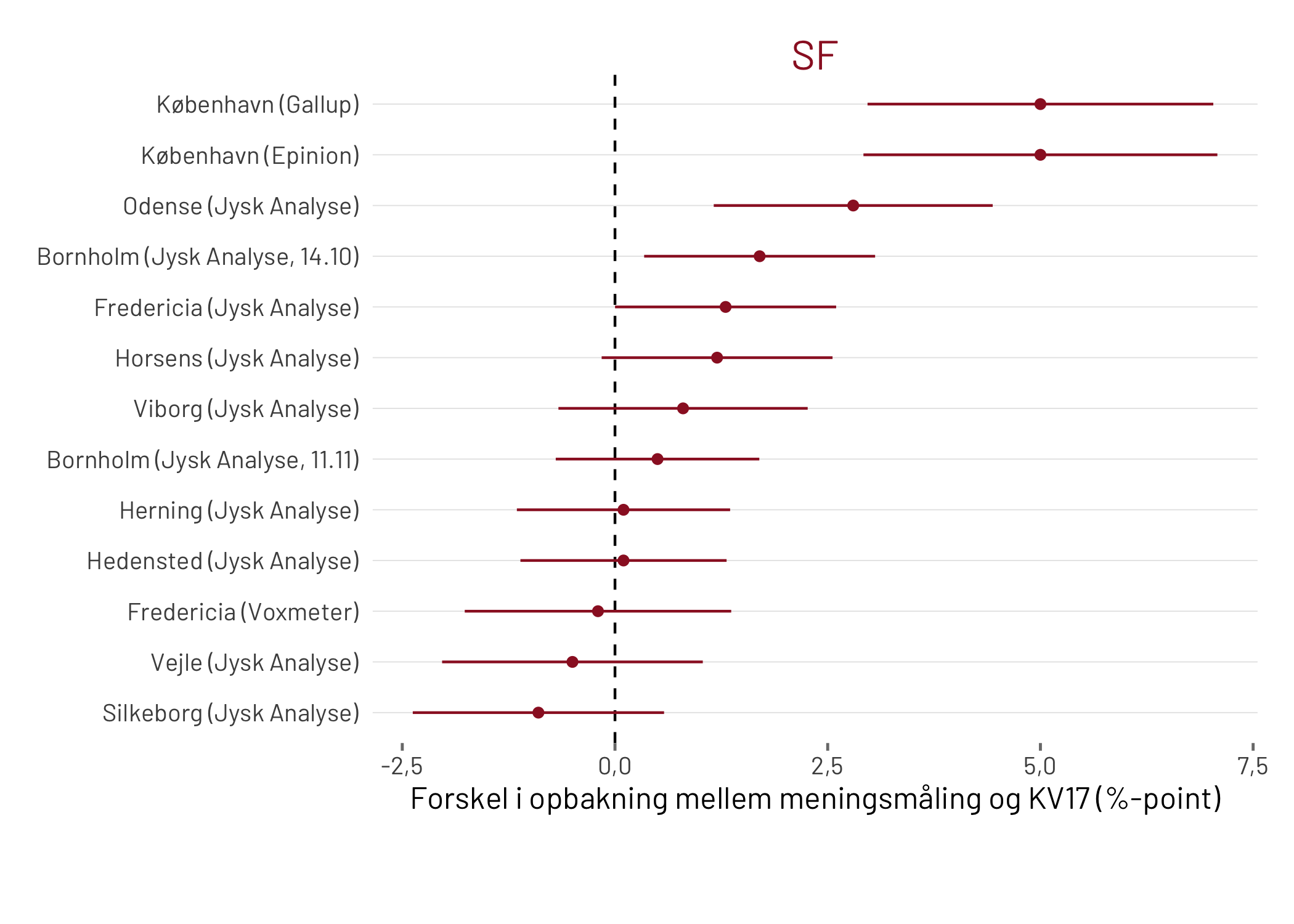 SF står til fremgang i København (både hos Gallup og Epinion). Ellers står den blot på en lille fremgang eller samme opbakning som ved forrige valg.