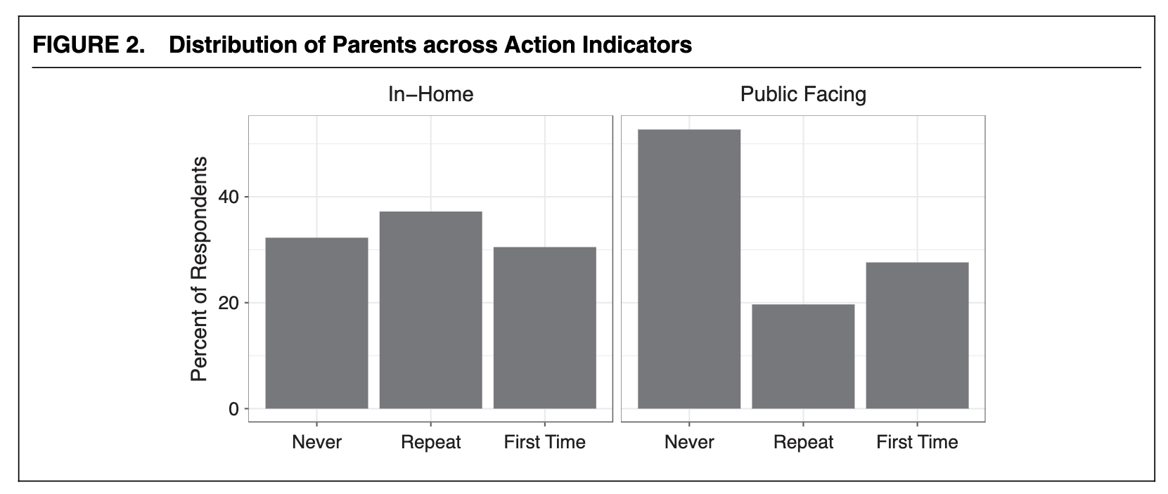 First, consider Figure 1 in Heinzel et al. (2024) with a simple bar chart showing the distribution of an index of interest. There are four different categories (0, 1, 2, and 3), and each bar shows the percentage of observations within each category.