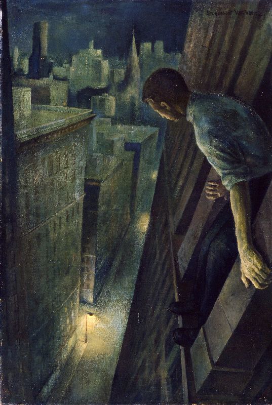 - ’Suicide with Skyscrapers (Man on the Ledge)’ (1940) by Stuyvesant Van Veen.