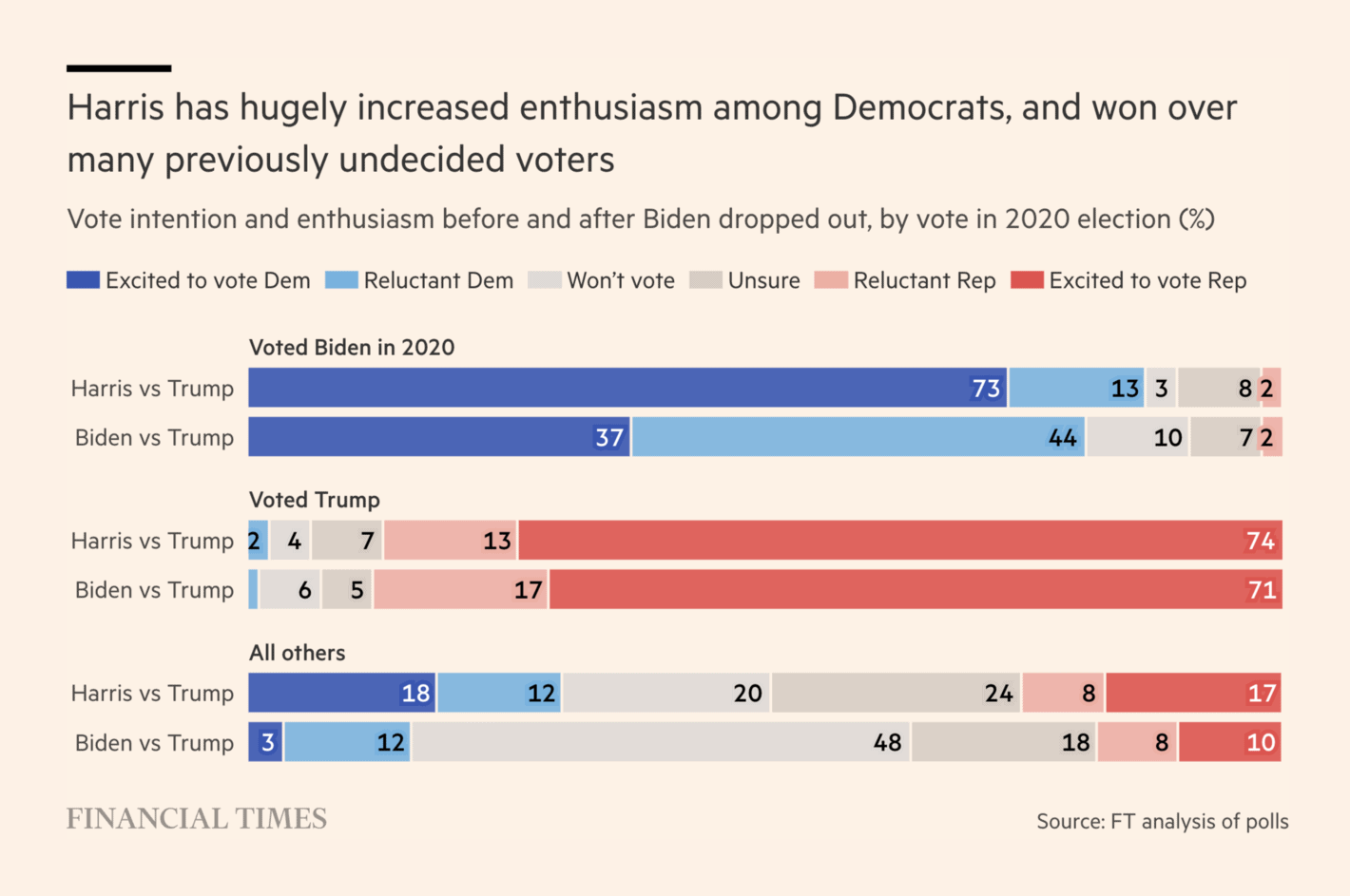 The Financial Times: Kamala Harris draws level with Donald Trump in race for the White House