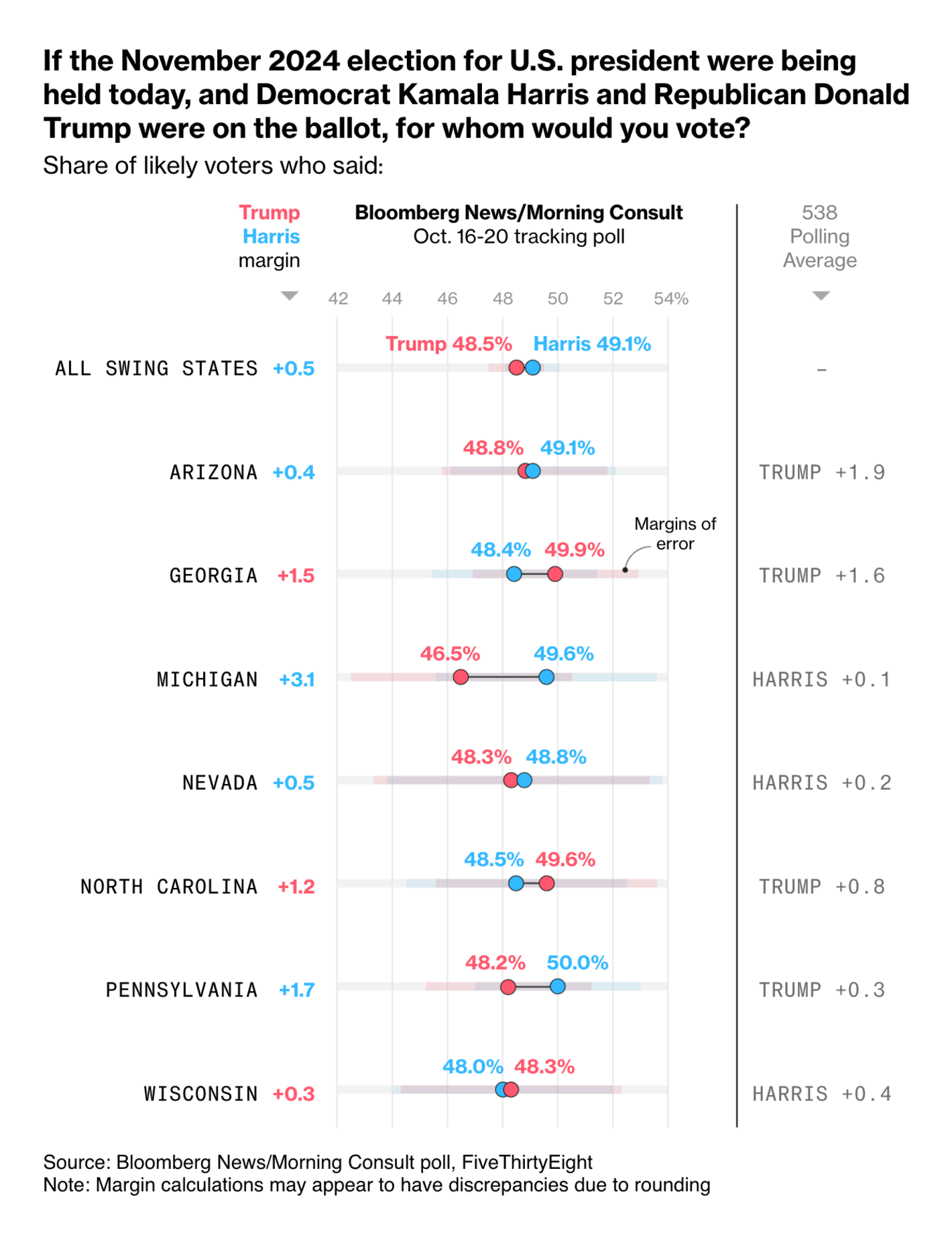 Bloomberg: Two Weeks Out, Trump and Harris Are Locked in a Dead Heat
