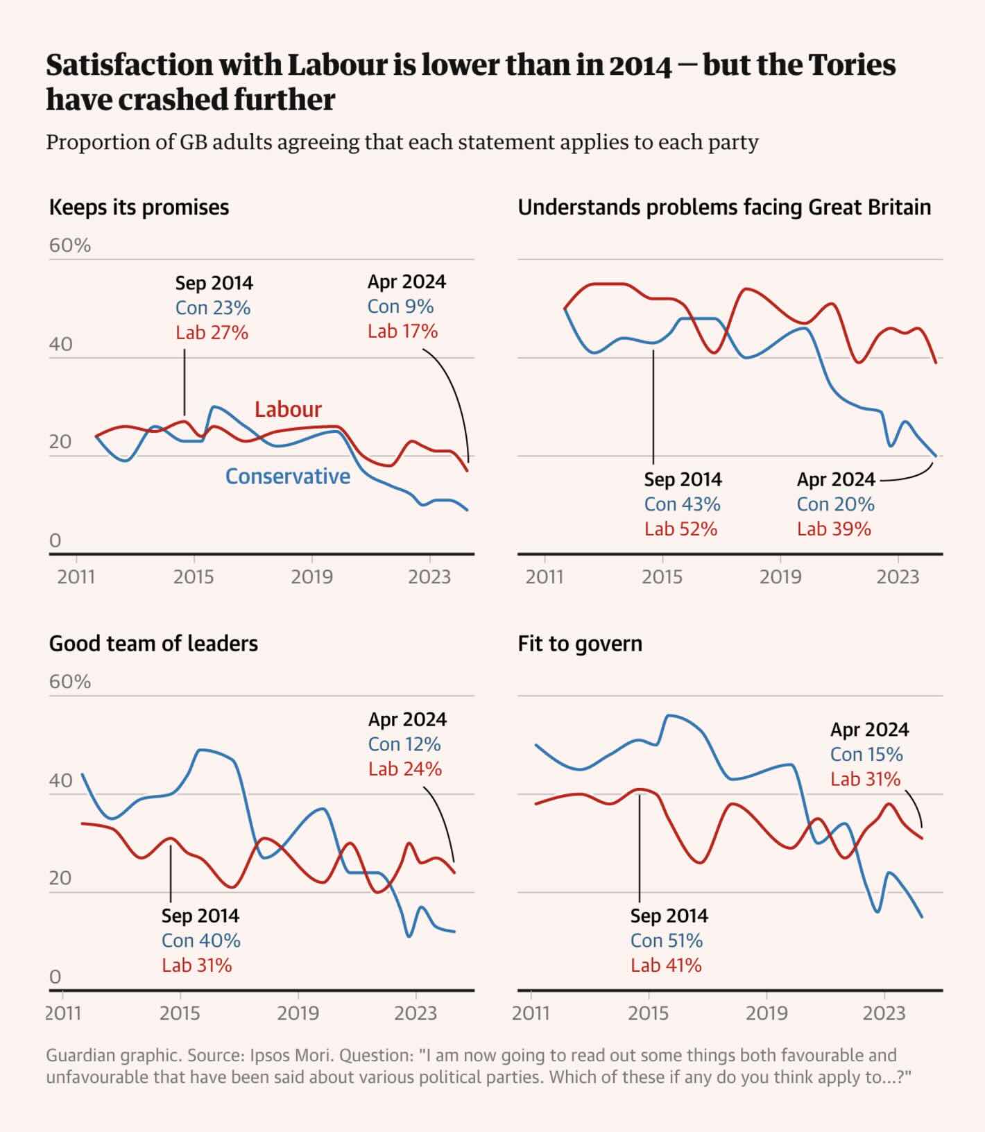 The Guardian: Labour are ahead in the polls, but have they won hearts and minds? These charts suggest not