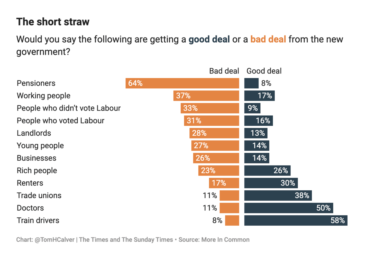 Another good visualisation from YouGov. What I like about this visualisation is that it contains a lot of information (together with an interpretation of what the data shows). This is ideal for sharing on social media without having to look up additional details (such as question wording and fieldwork dates).